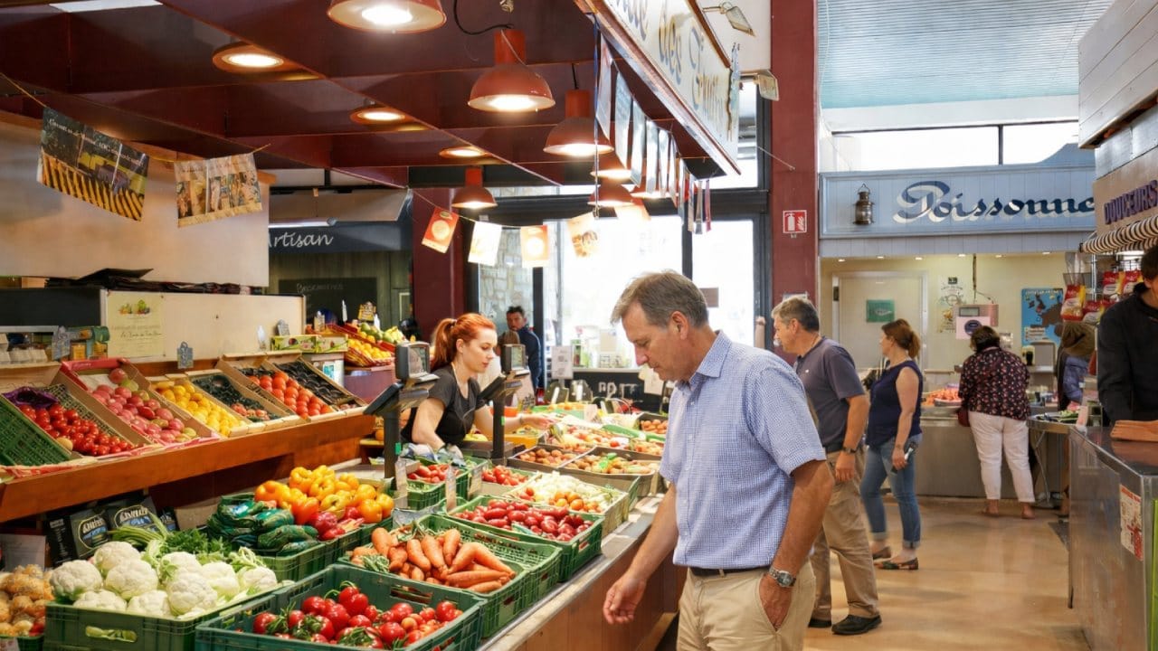 Le bourg d’Arzon regroupe tous les commerces essentiels autour de l’église : boulangerie, boucherie, poissonnerie, primeur, fromagerie, torréfacteur et caviste. Deux supermarchés sont également accessibles facilement : Super U à l’entrée d’Arzon et Intermarché au Port du Crouesty, tous deux ouverts le dimanche matin.